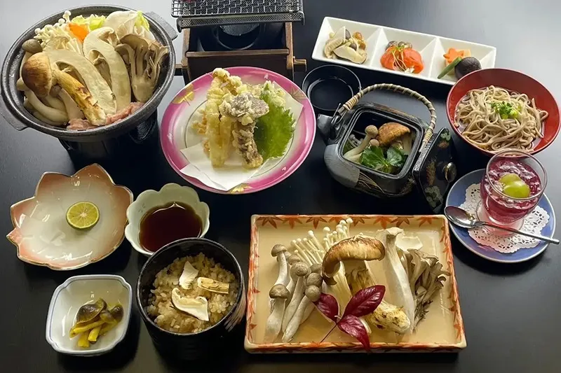別所温泉から車で約5分の立地に、きのこ料理のランチを楽しめるお店を構えております。上信越道東部湯の丸ICから車で約30分、中央道・長野道の松本ICや岡谷ICからは車で約1時間の場所に位置しています。松本城からも車で50分ほどでお越しいただけるため、観光しながらこだわりのきのこ料理を楽しめます。自家栽培のきのこを使用したメニューで、バランスの良い食事を提供しています。